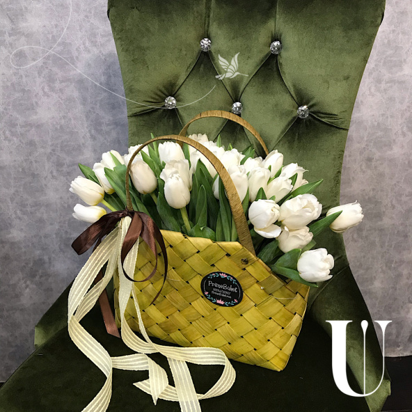 Монокопозиция из белой гипсофилы в глянцевой пленке
