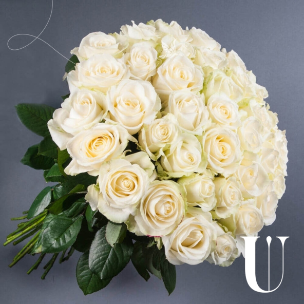 Букет из 9 пионовидных роз кремового оттенка сорта Шиммер в стильной упаковке
