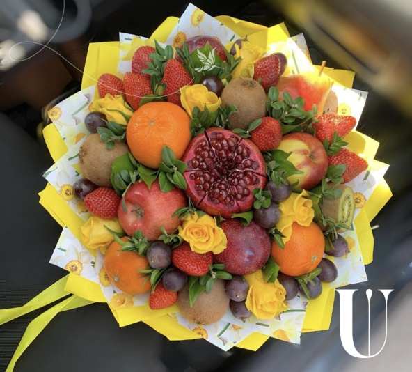 Авторский букет в нежно-золотистой гамме в розовый упаковке