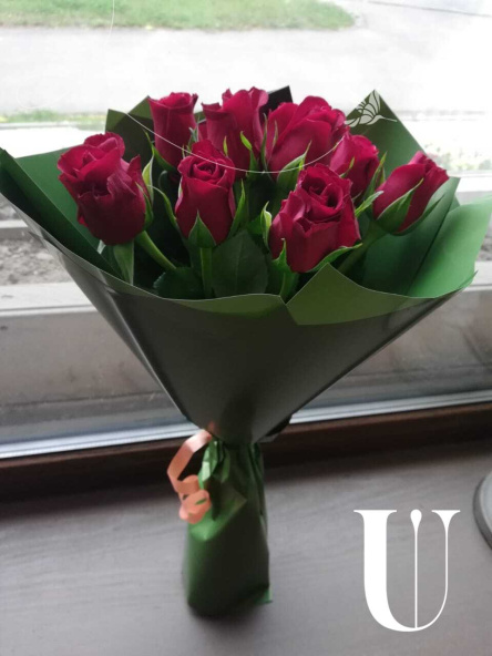 Монобукет из микса 11 роз Кения в матовой упаковке