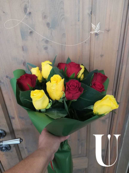 Монобукет из микса 11 роз Кения в матовой упаковке