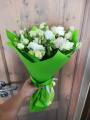 Букет из роз Вайт Охара, кремового диантуса и белой маттиолы в упаковке