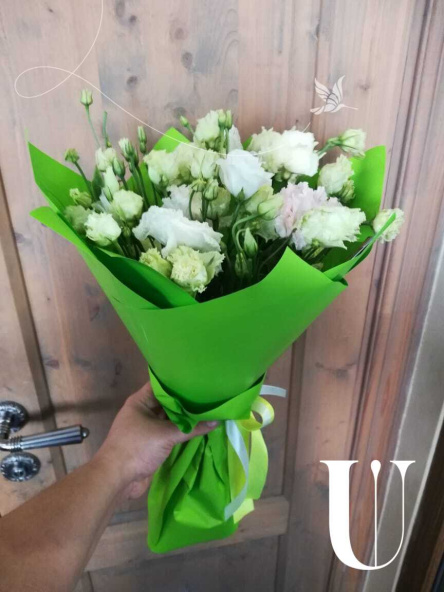 Монобукет из 5 белых маттиол в дизайнерской пленке