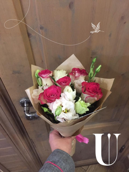 Монобукет из микса 11 роз Кения в матовой упаковке
