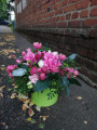 Монобукет из розовых гортензий в дизайнерской упаковке