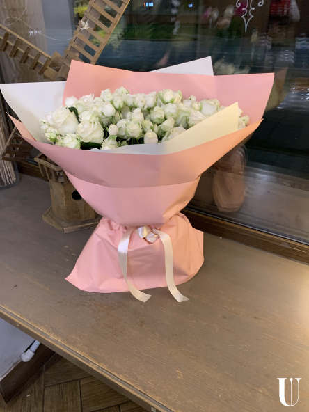 Монобукет из 11 роз Вайт Охара в розовой упаковке