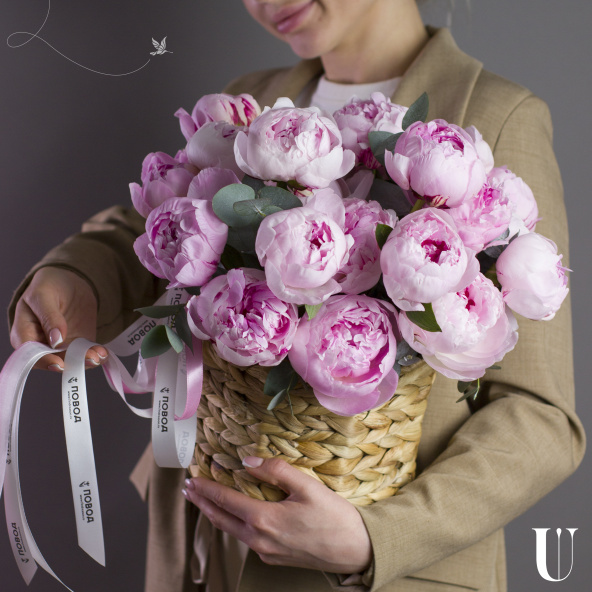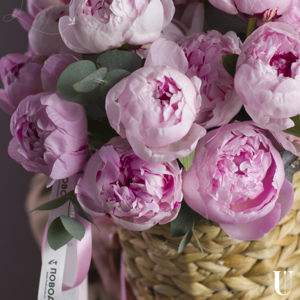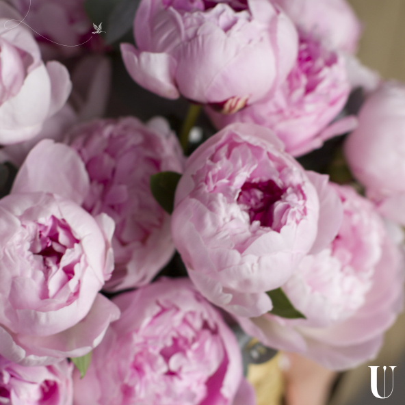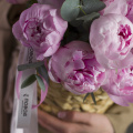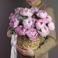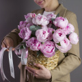 Монобукет из 10 белых и 11 розовых пионов в крафтовой упаковке