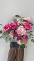 Монобукет из розовых гортензий в дизайнерской упаковке