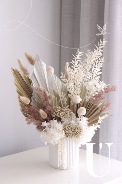 Светлые сухоцветы в кашпо M