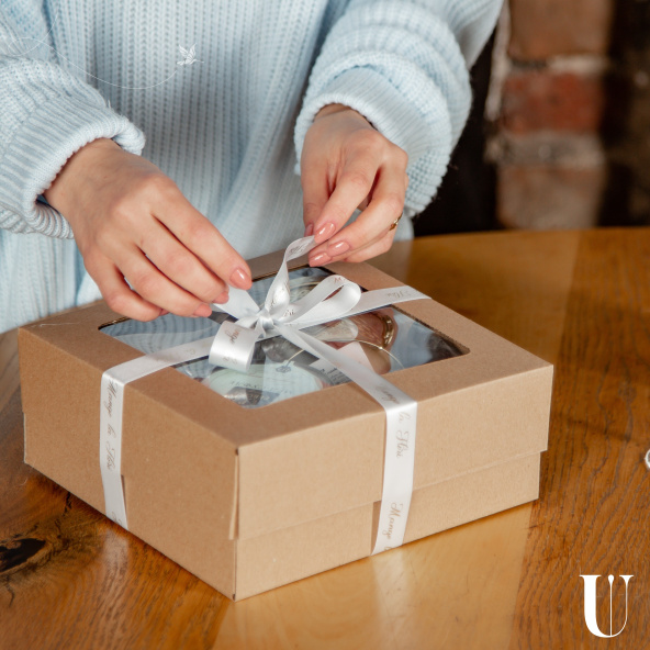 Монобукет из 5 роз Вайт Охара в дизайнерской упаковке