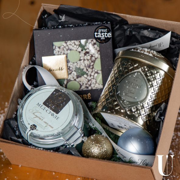 Классический букет белой гортензии и пионовидных роз Шиммер в упаковке