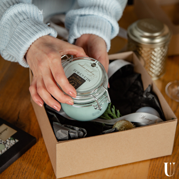 Монобукет из белых эустом и эвкалипта в матовой пленке