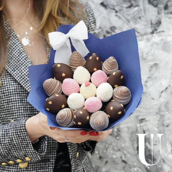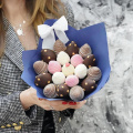 В данном размере букета помещается до 23 ягод отборной и крупной клубники