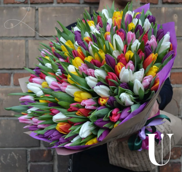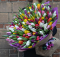 Большой букет из 51 пионовидной розы сорта Вайт Охара