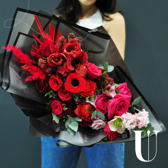 - Роза пионовидная красная - 5 шт