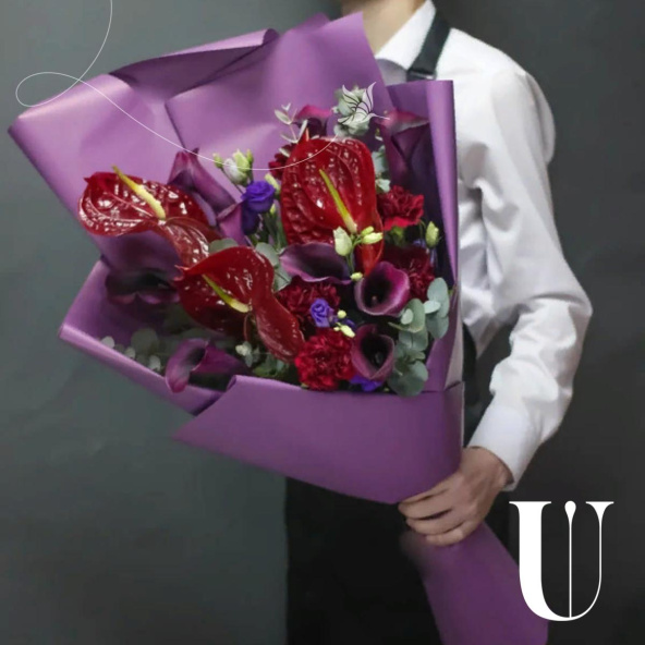 - Дизайнерская пленка фиолетовая, лента красная
