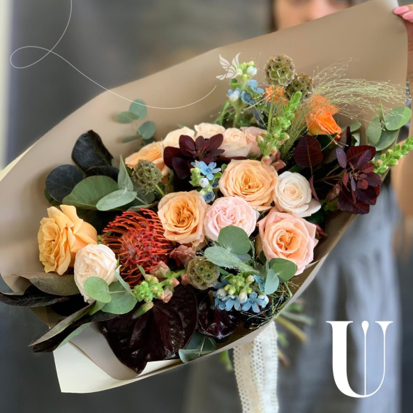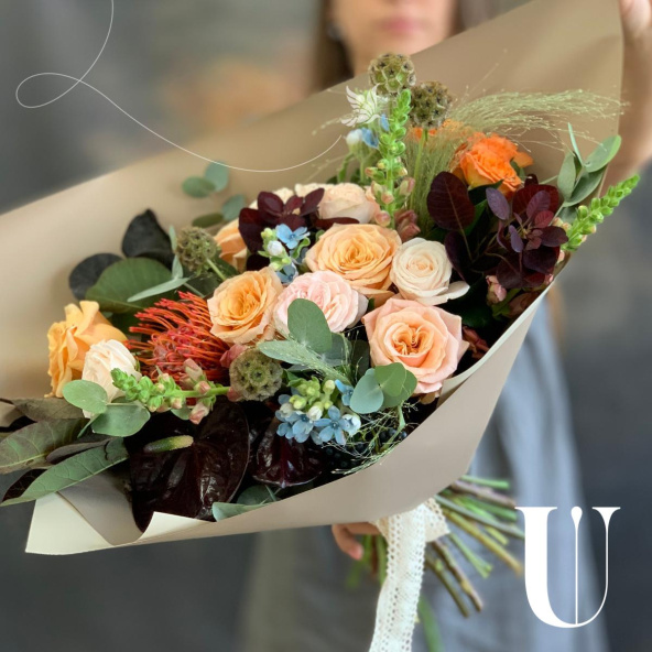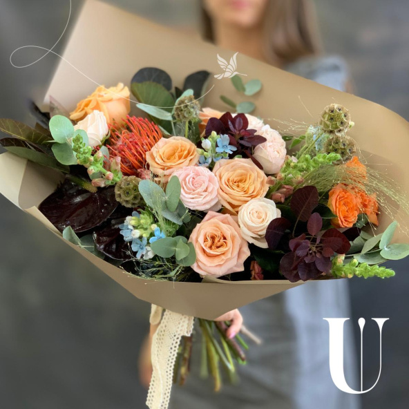 - Роза кустовая, оранжевая, 40 см. - 1 шт