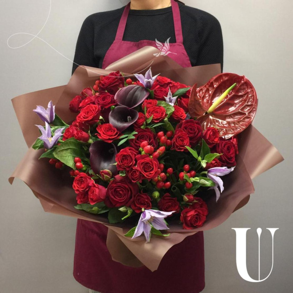 - Роза кустовая Мирабель, красная 60 см - 9 шт