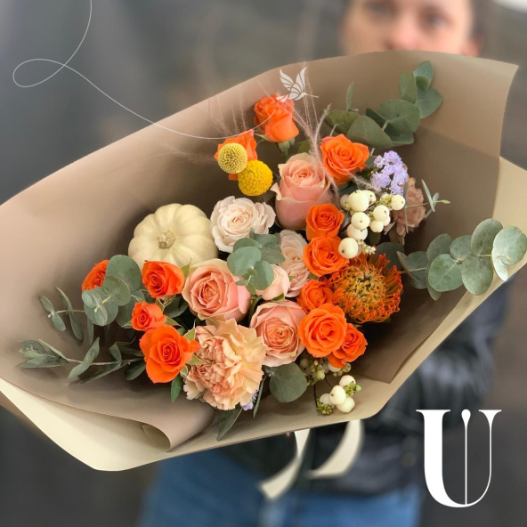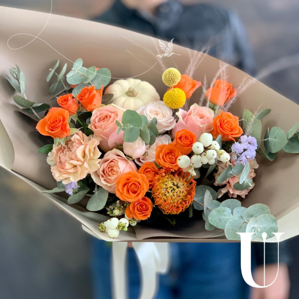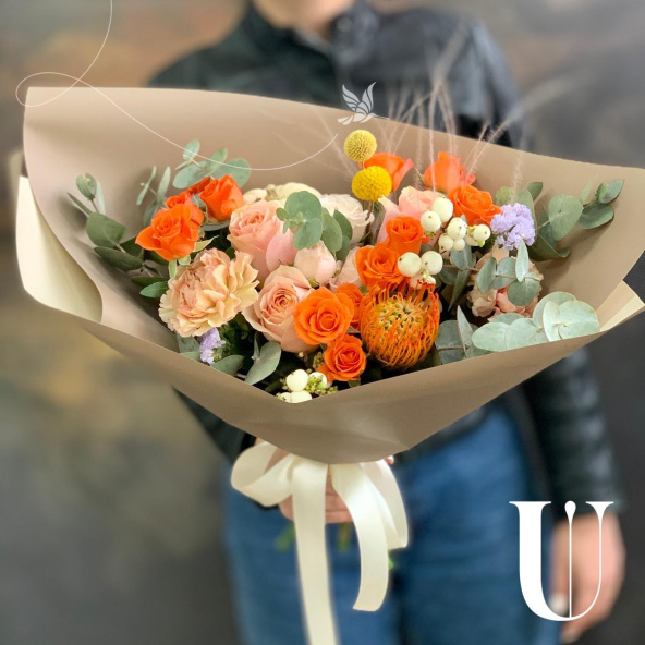 - Роза кустовая, оранжевая, 40 см. - 4 шт