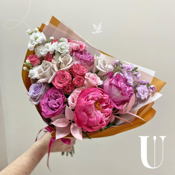 - Пионовидная роза ярко-розовая - 3 шт
