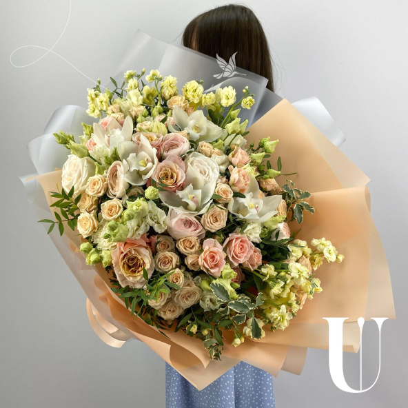 - Роза кустовая Крем брюле, кремовая 50 см - 9 шт
