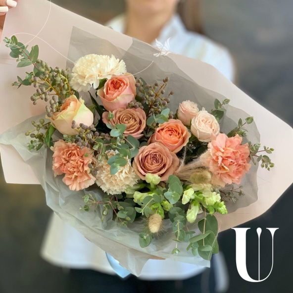 - Роза кустовая пионовидная, Бомбастик, нежно-розовая, 50 см. - 1 шт