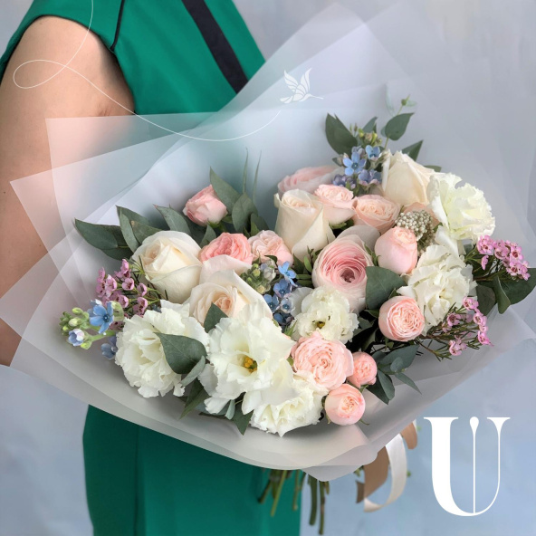 - Роза кустовая пионовидная, Бомбастик, нежно-розовая, 50 см. - 4 шт