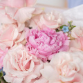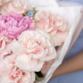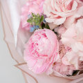 Авторский букет из розы Пинк Охара, диантусов Пинк и маттиолы в упаковке