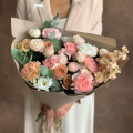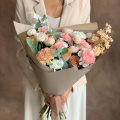 - Роза кустовая пионовидная, Бомбастик, пудровая - 5 шт