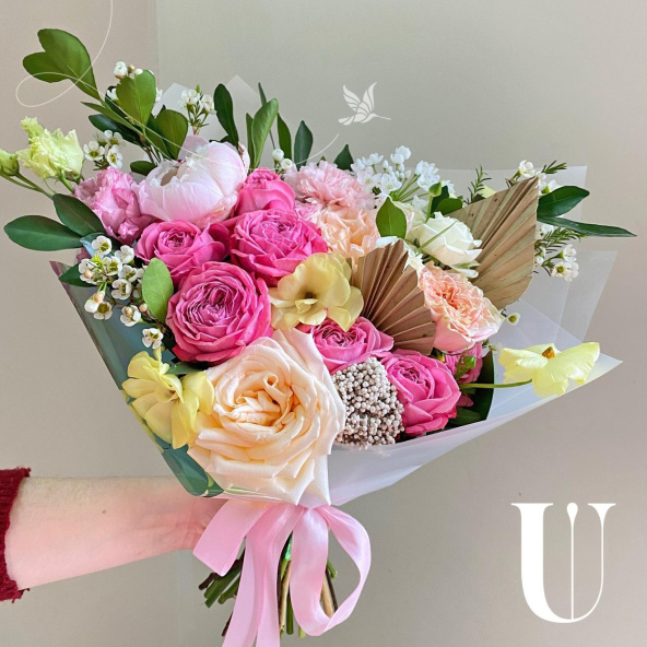 - Пионовидная роза кремовая - 3 шт