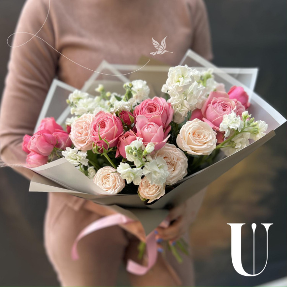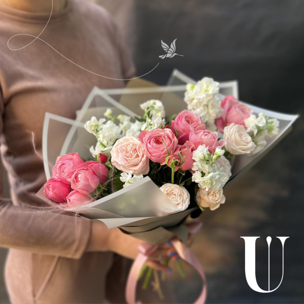 - Роза кустовая пионовидная, Бомбастик, нежно-розовая, 50 см. - 3 шт