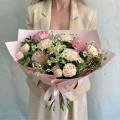 - Роза кустовая пионовидная, Бомбастик, нежно-розовая, 50 см. - 3 шт