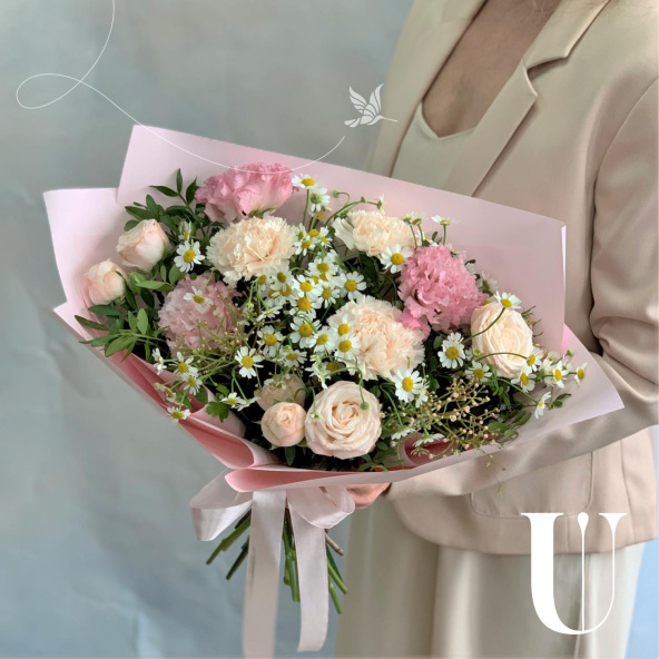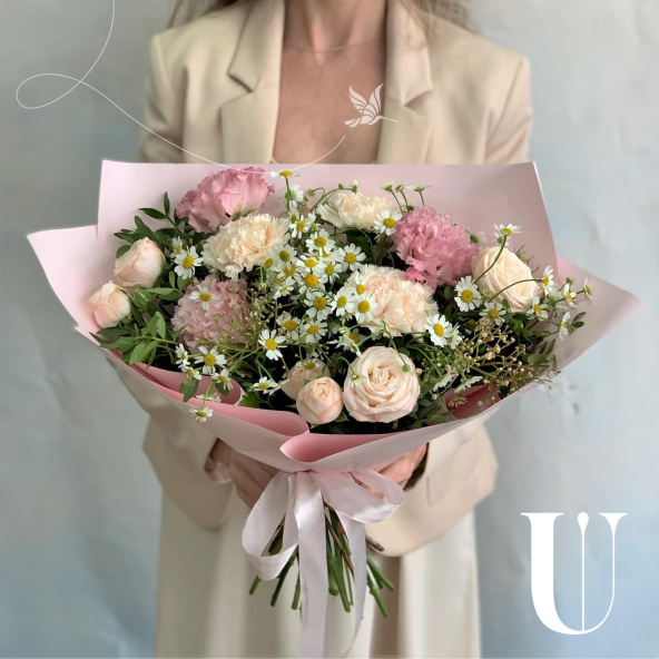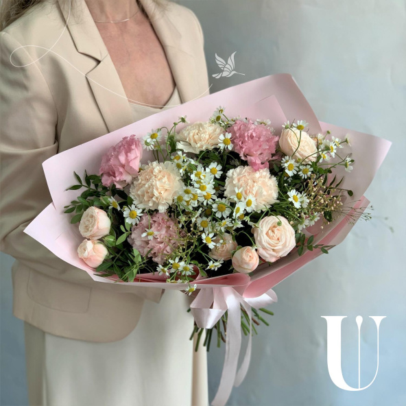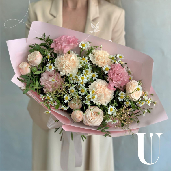 - Роза кустовая пионовидная, Бомбастик, нежно-розовая, 50 см. - 3 шт