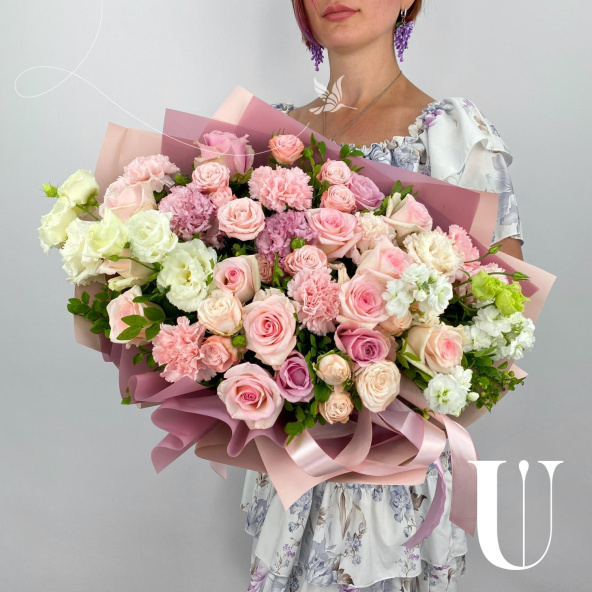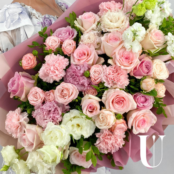 - Роза кустовая пионовидная, Бомбастик, нежно-розовая, 50 см. - 6 шт