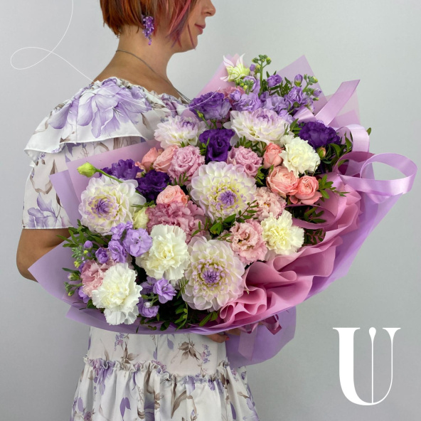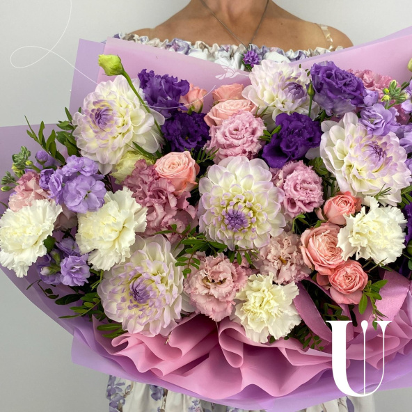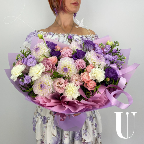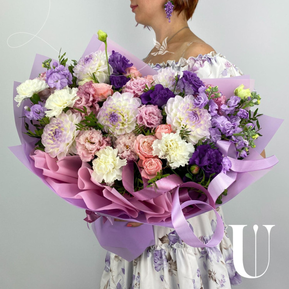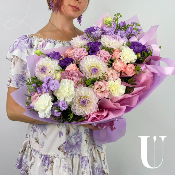 - Георгина Эвелин, бело-сиреневая - 5 шт