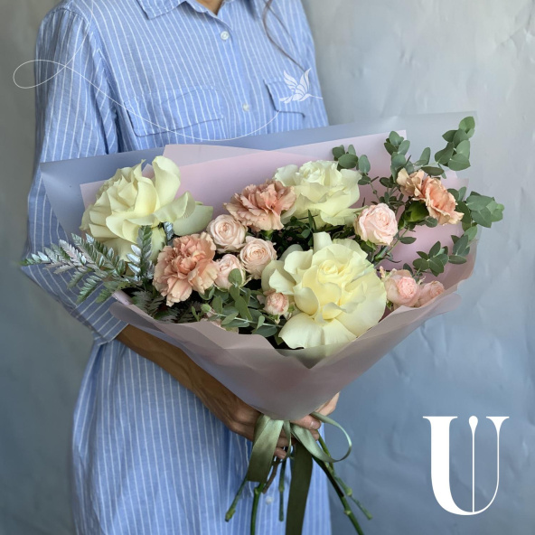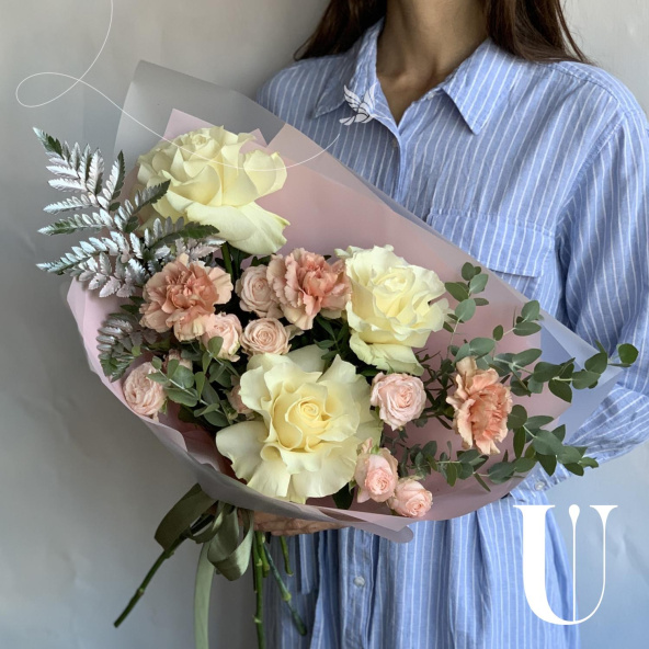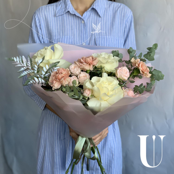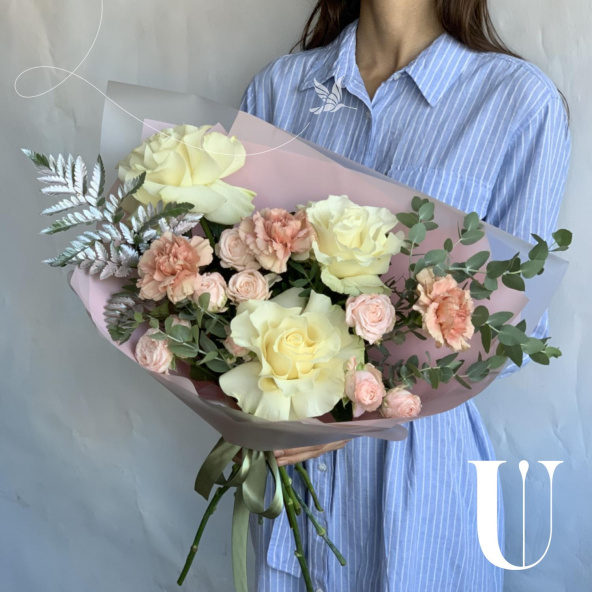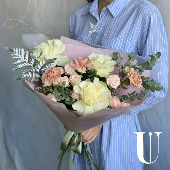 - Роза кустовая пионовидная, Бомбастик, нежно-розовая, 50 см. - 3 шт