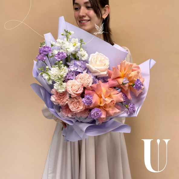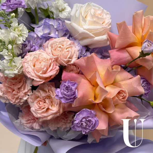 - Роза Вайт Охара, Эквадор, бело-розовая, пионовидная 50 см. - 1 шт
