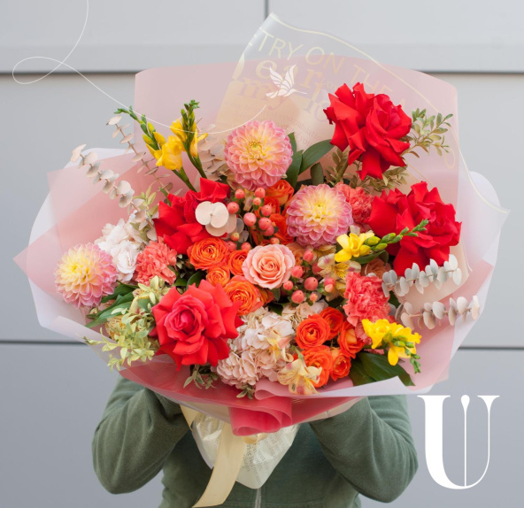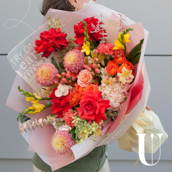 - Роза кустовая, оранжевая, 50 см. - 3 шт