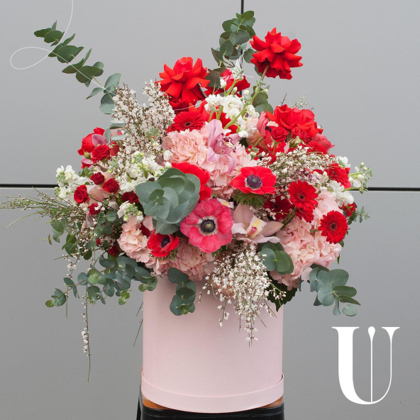 - Шляпная коробка розовая (выс. 20 см, диам. 20 см) - 1 шт