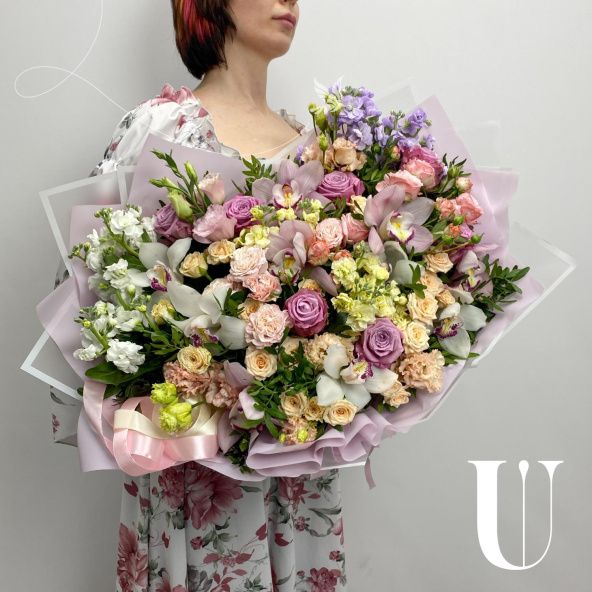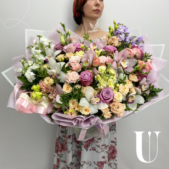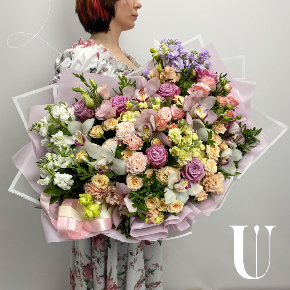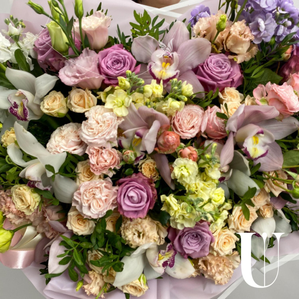 - Орхидея цимбидиум, бело-розовый - 11 шт