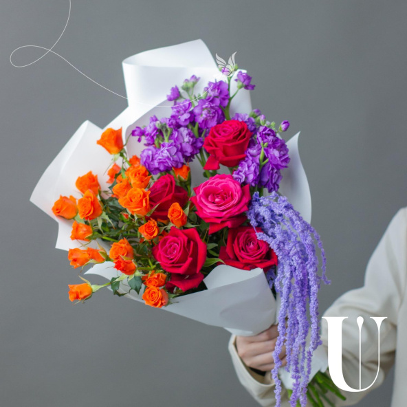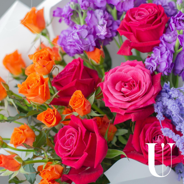 - Роза кустовая, оранжевая, 50 см. - 5 шт