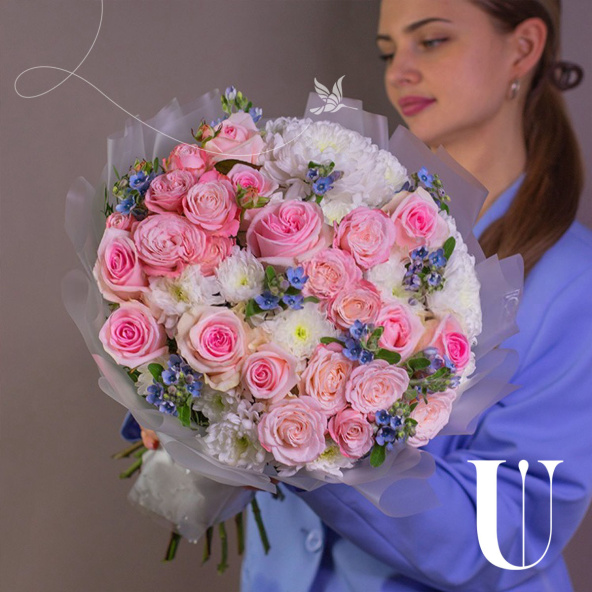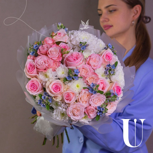 - Роза кустовая пионовидная, Бомбастик, нежно-розовая - 3 шт