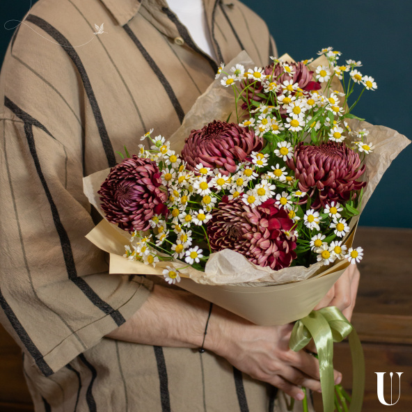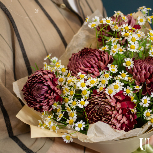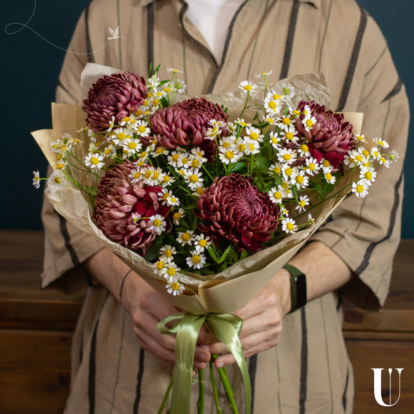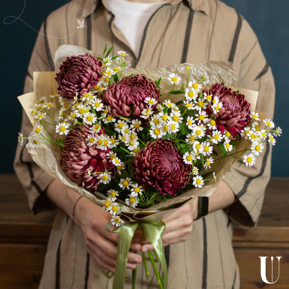 - Хризантема Бигуди, бордовая, 50 см - 5 шт
