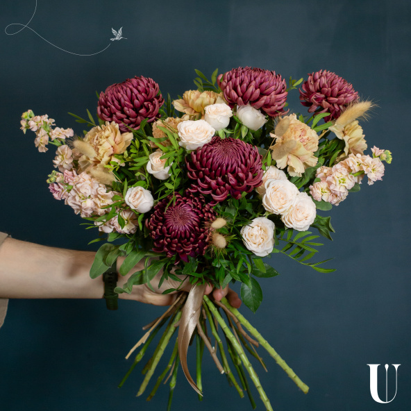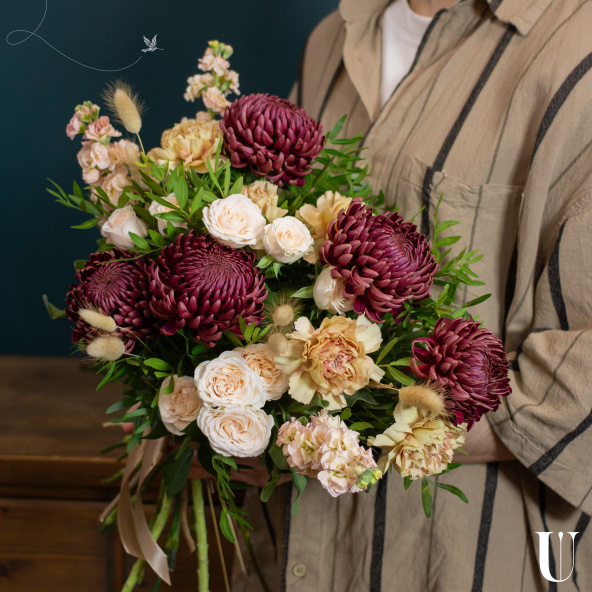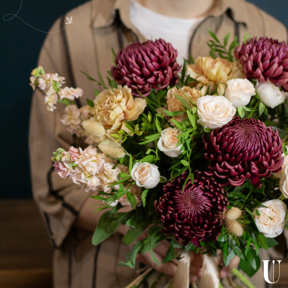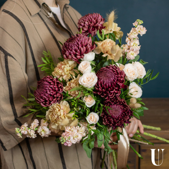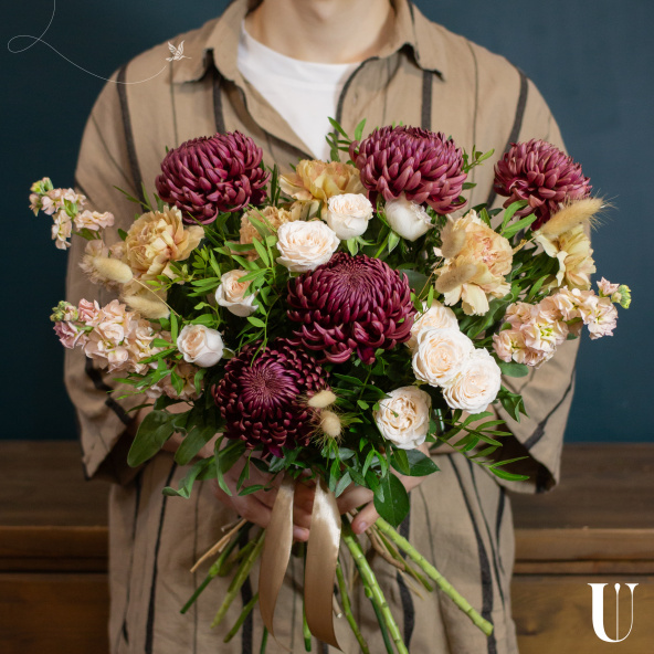 - Хризантема Бигуди, бордовая, 50 см - 5 шт
