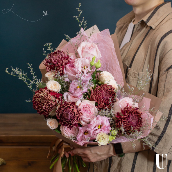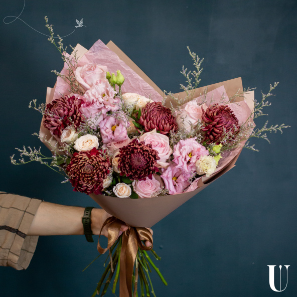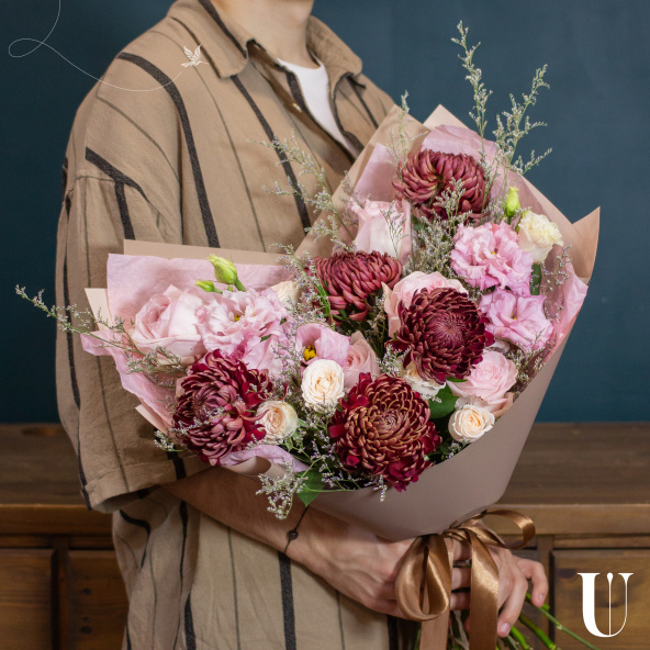 - Хризантема Бигуди, бордовая, 50 см - 5 шт