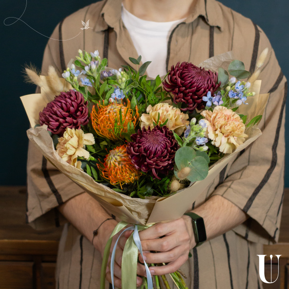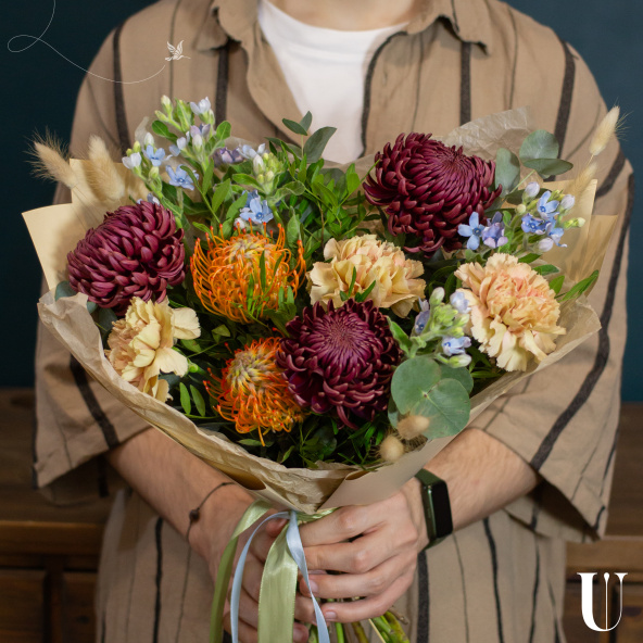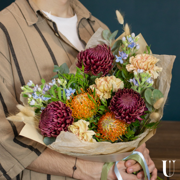- Хризантема Бигуди, бордовая, 50 см - 3 шт