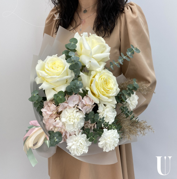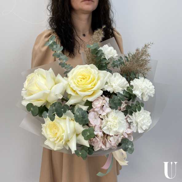 - Роза Кэндллайт Эквадор, бело-золотистая 50 см - 3 шт