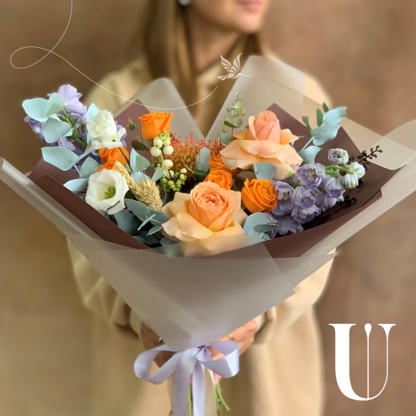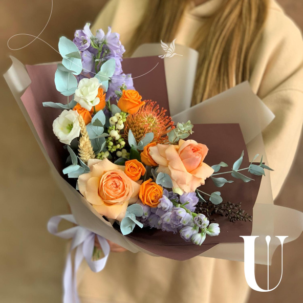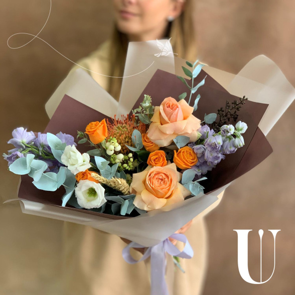 - Роза кустовая, оранжевая, 40 см. - 2 шт