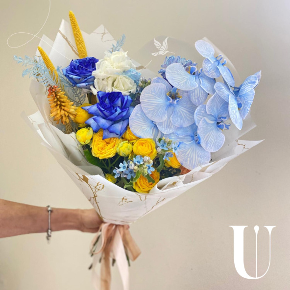 - Орхидея Фаленопсис синяя, ветка - 1 шт