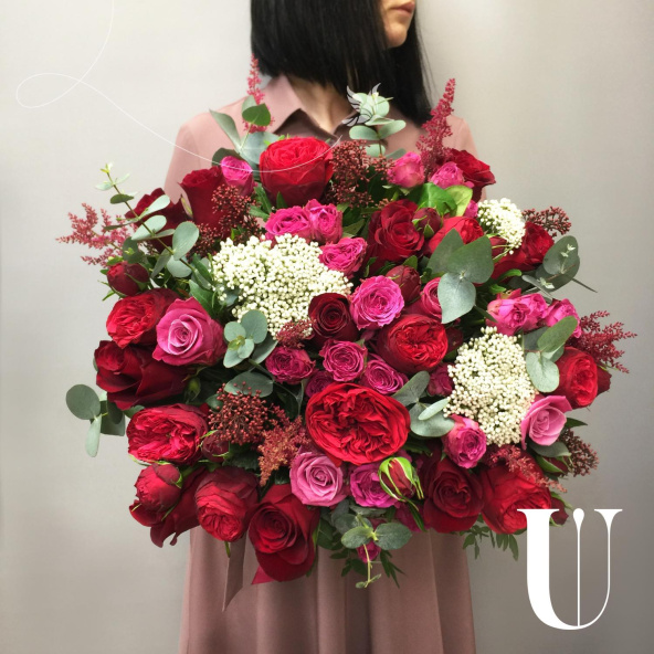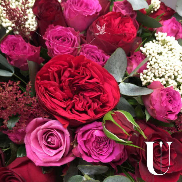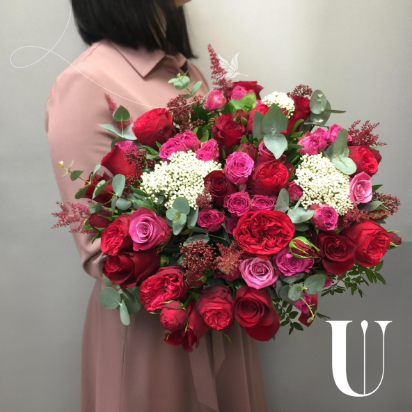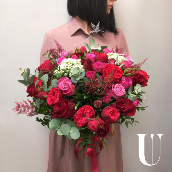 - Роза кустовая пионовидная, Мисти Бабблз, малиновая, 50 см. - 7 шт
